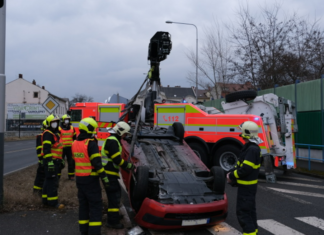 Dvě jednotky profesionálních hasičů (HZS MSK) zasahovaly v sobotu 26.2.2022 odpoledne v Ostravě u nehody osobního automobilu Renault Megane, který skončil na střeše na silnici pod kruhovým objezdem, spojujícím Mariánskohorskou a Cihelní ulici s...